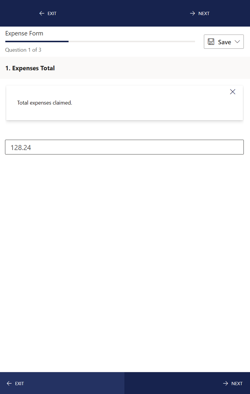 Default Questions 1: Expenses Total Total expenses claimed.