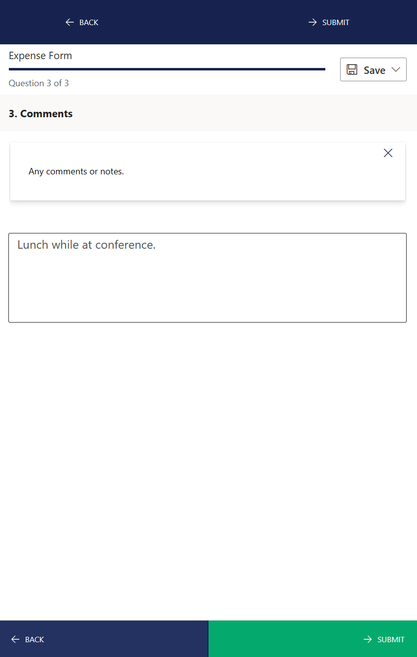The PowerApp can accommodate a variety of field types, including Date and Choice types (with OTHER). | |||